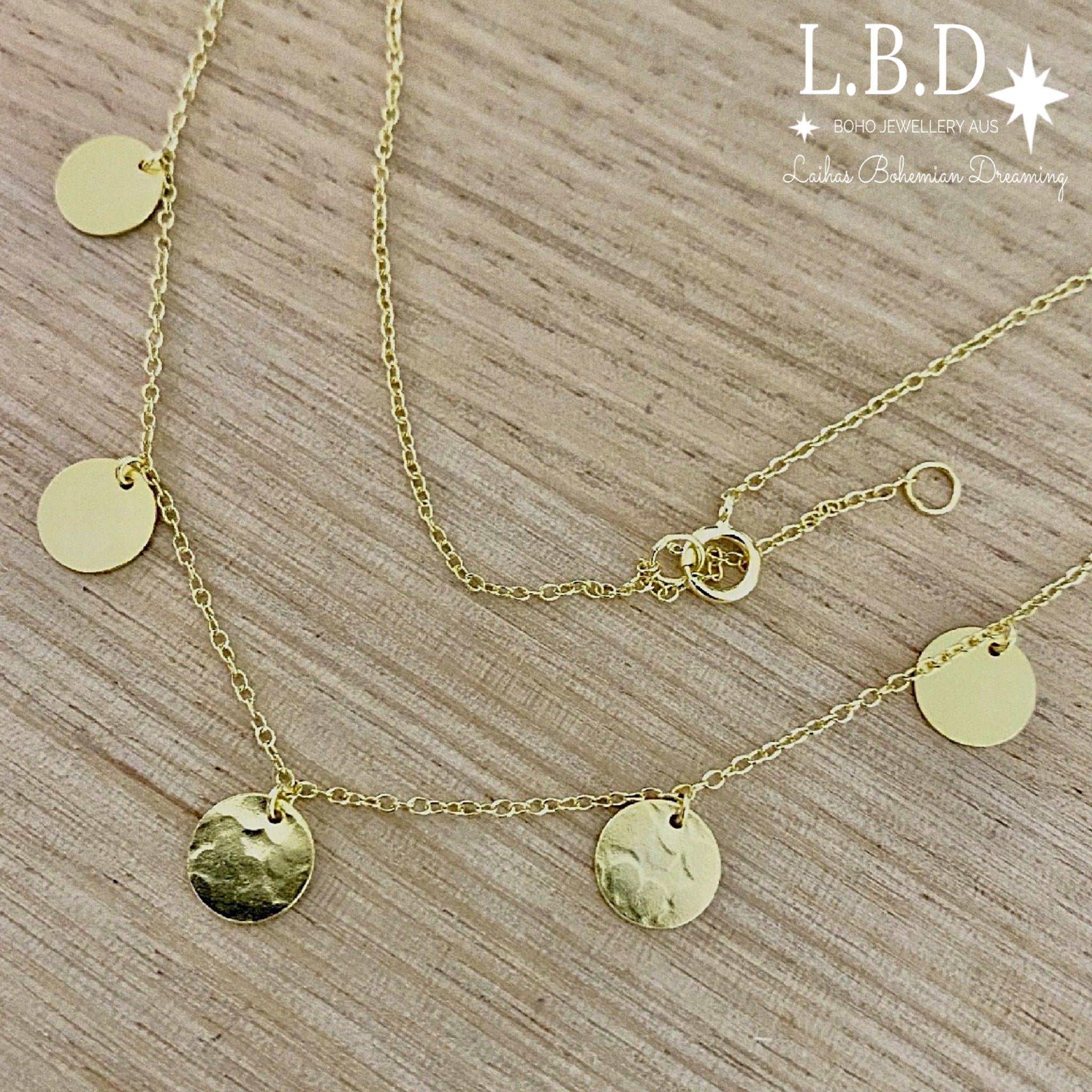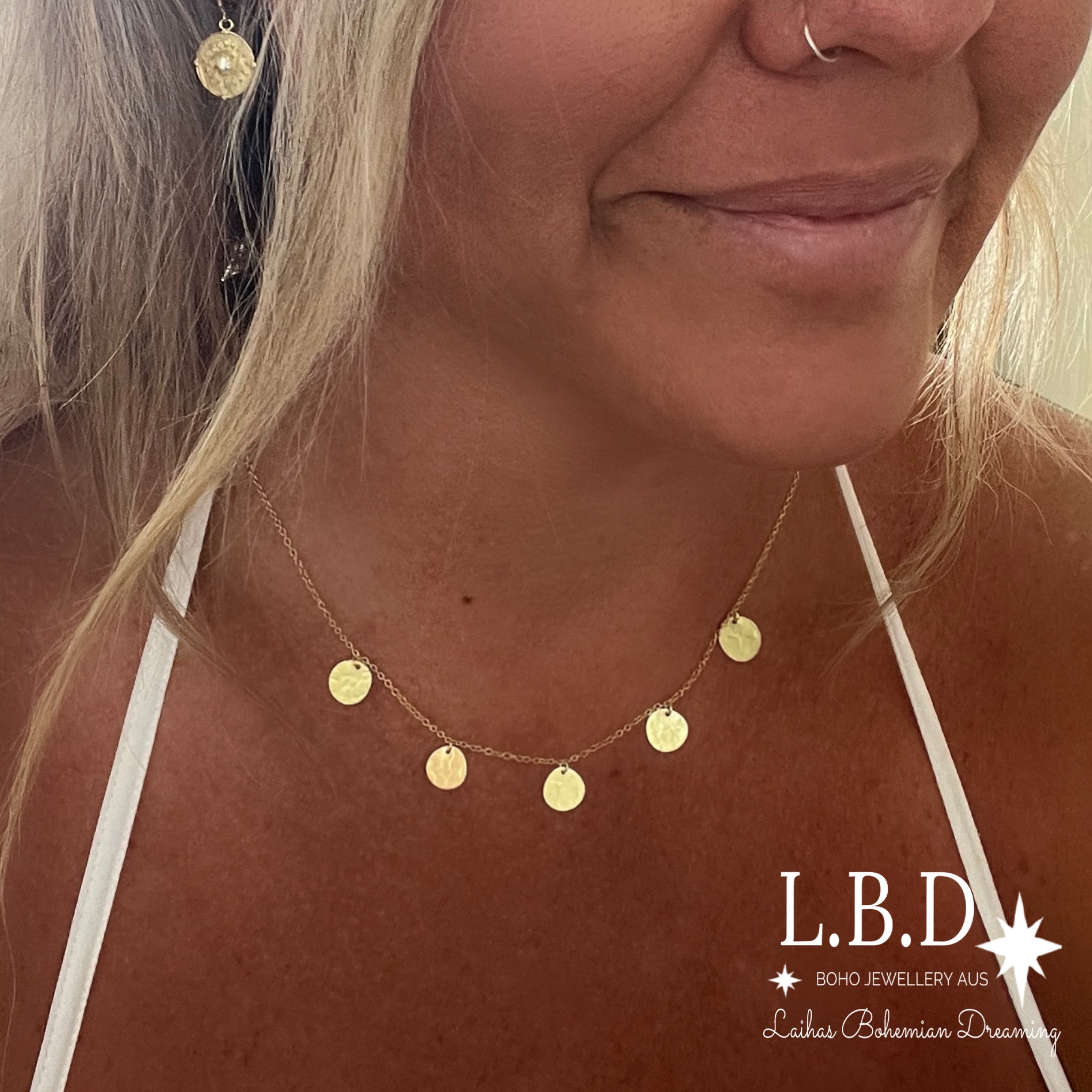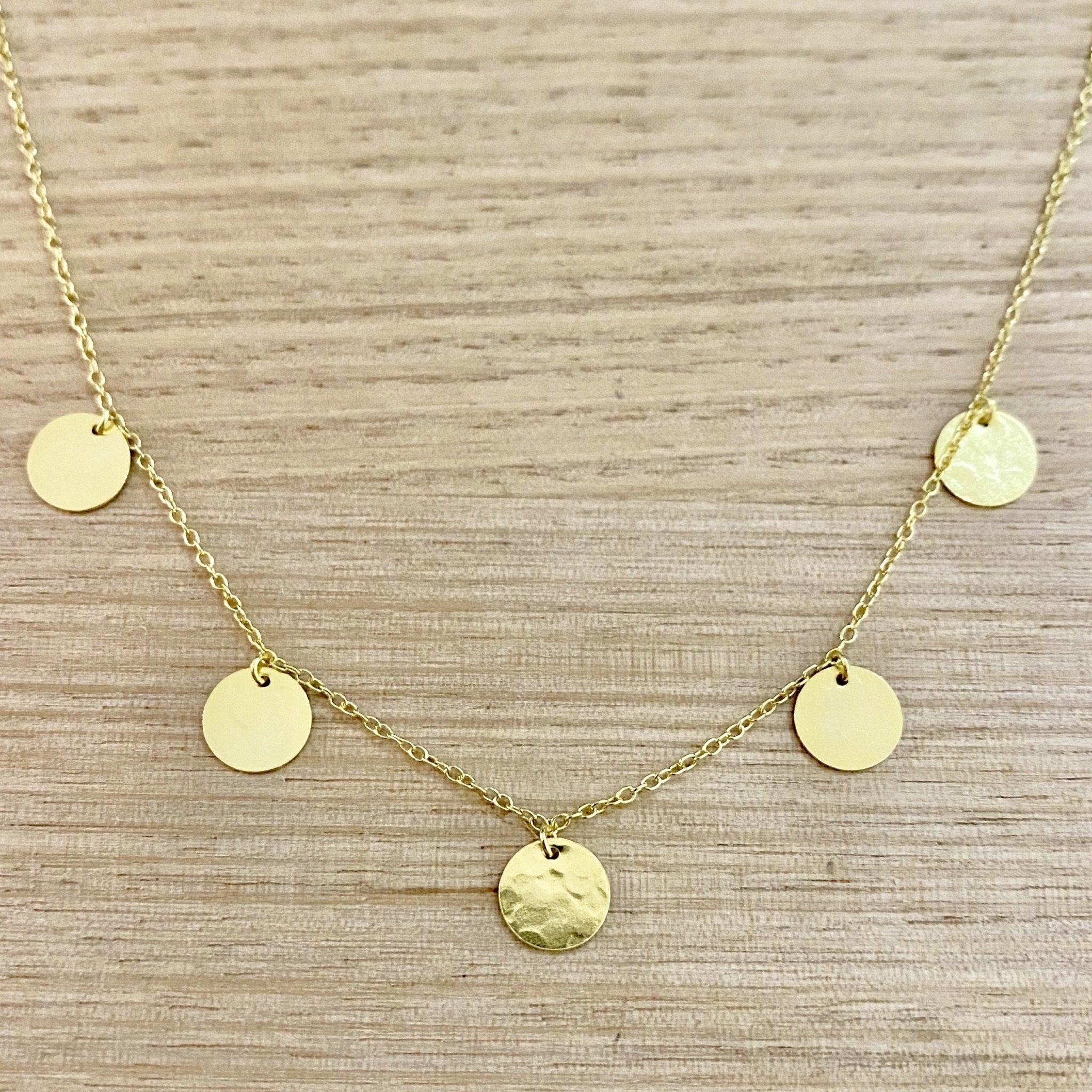 Delicate Round Disk Choker Style Sterling Silver Necklace