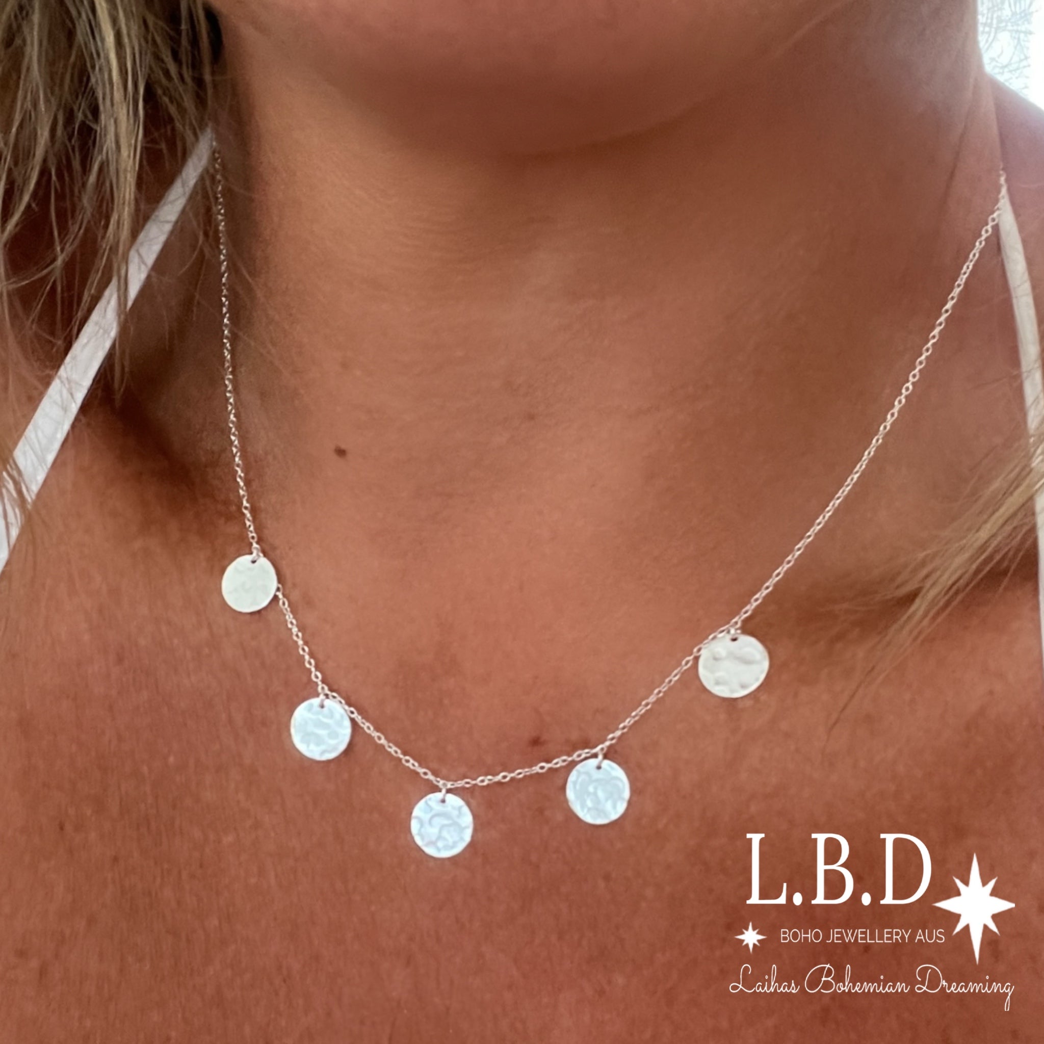 Laihas Round Hammered Disk Sterling Silver Necklace