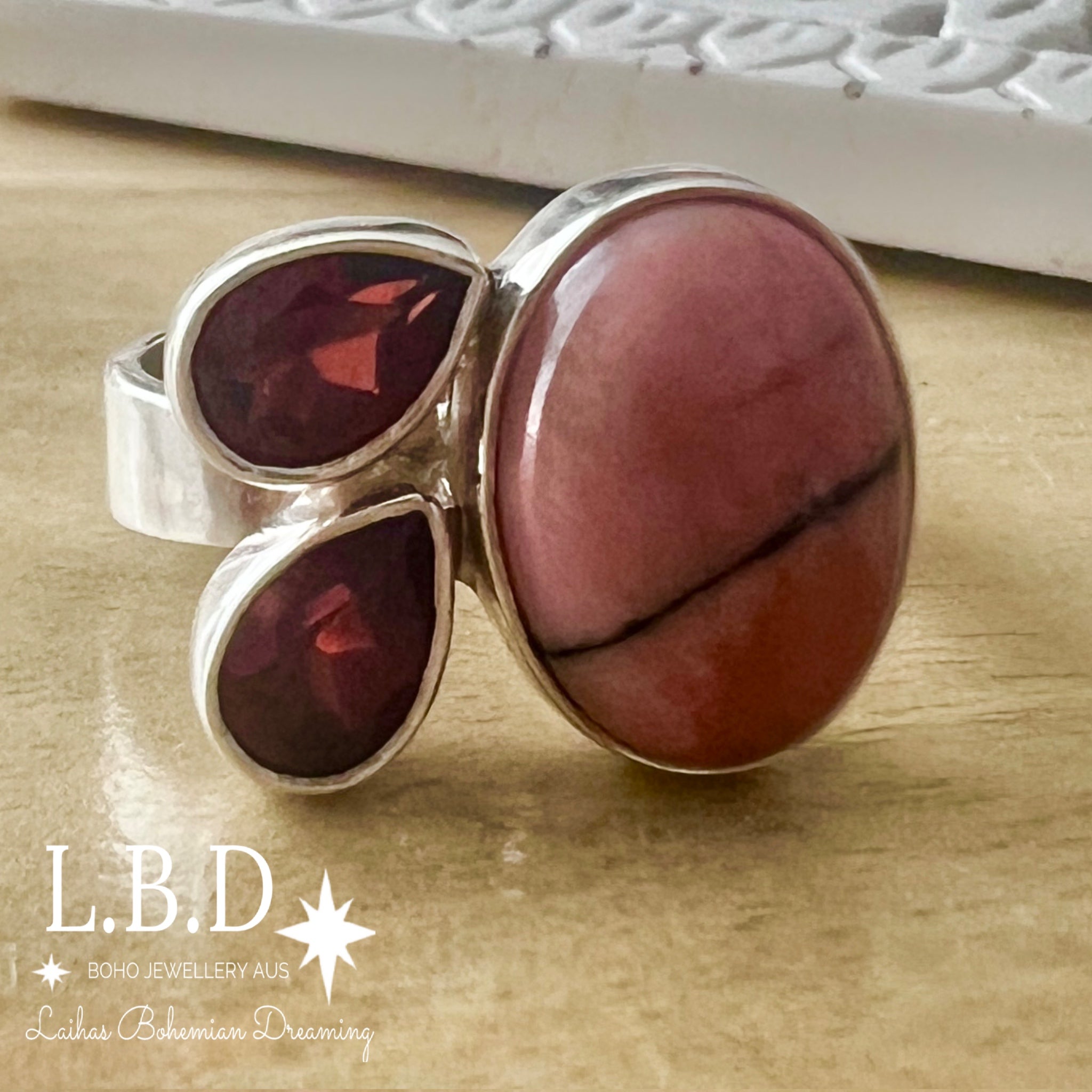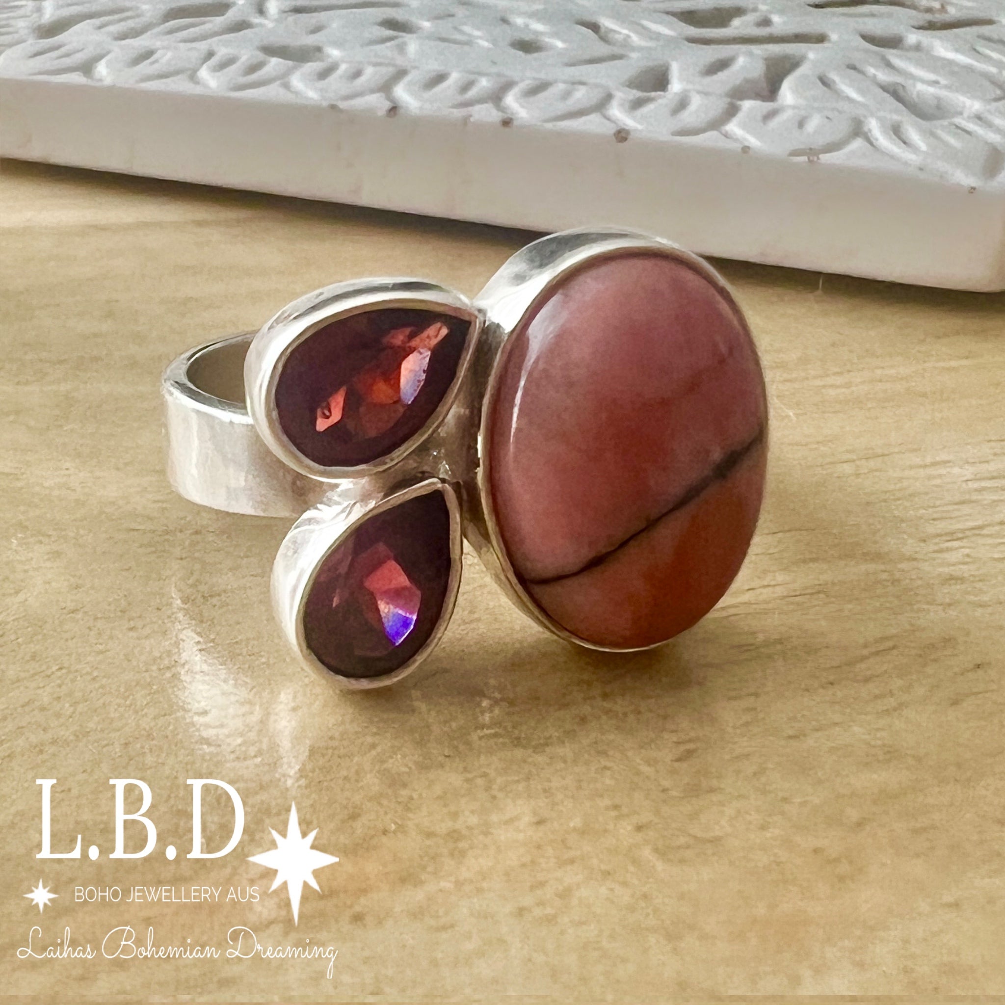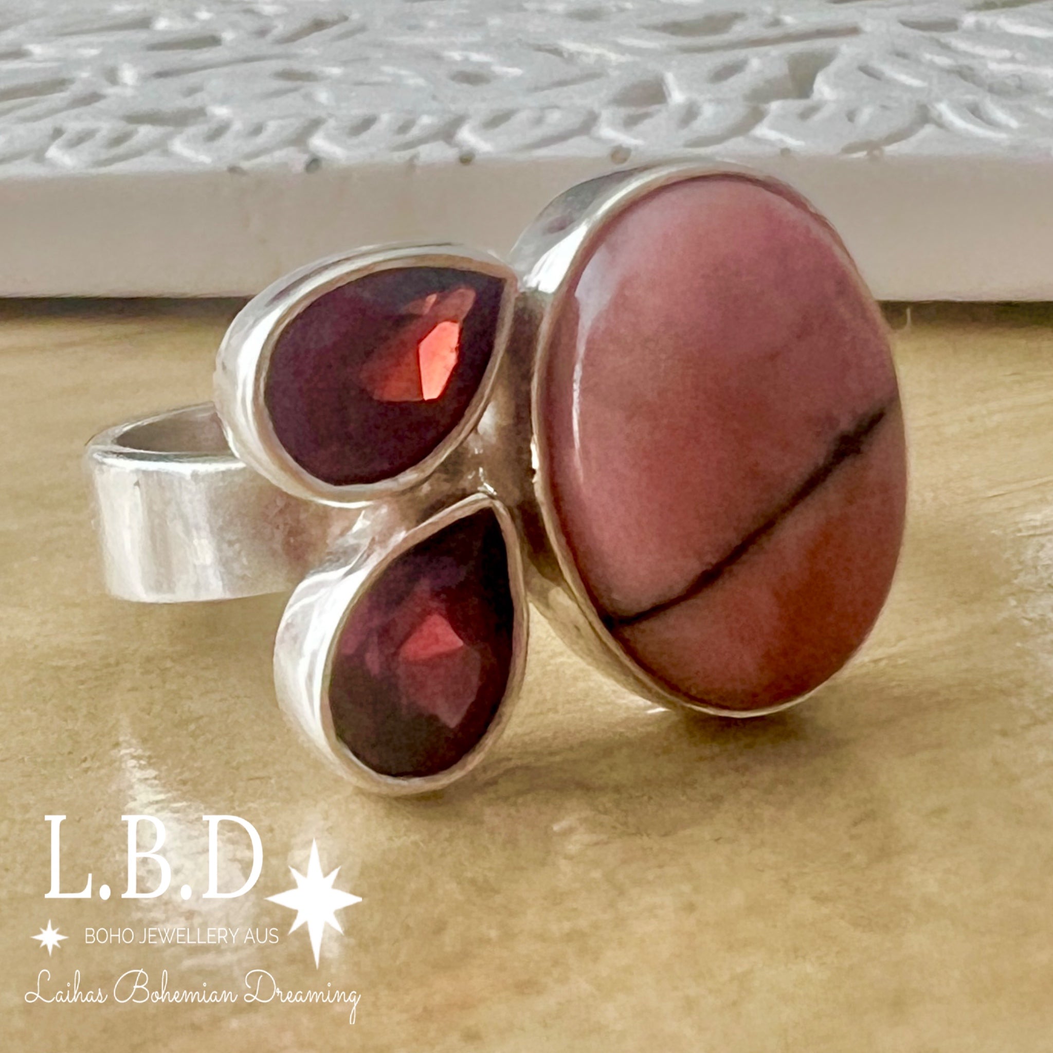 Combining Rhodonite and Garnet creates a powerful energetic pairing that balances emotional healing with grounding, passionate action. Rhodonite serves as the "Stone of Love" and emotional healer, while Garnet acts as the "Stone of Commitment" and vitality, creating a synergy often referred to as the "Passionate Protector" or a tool for, "Successful Forward Movement".