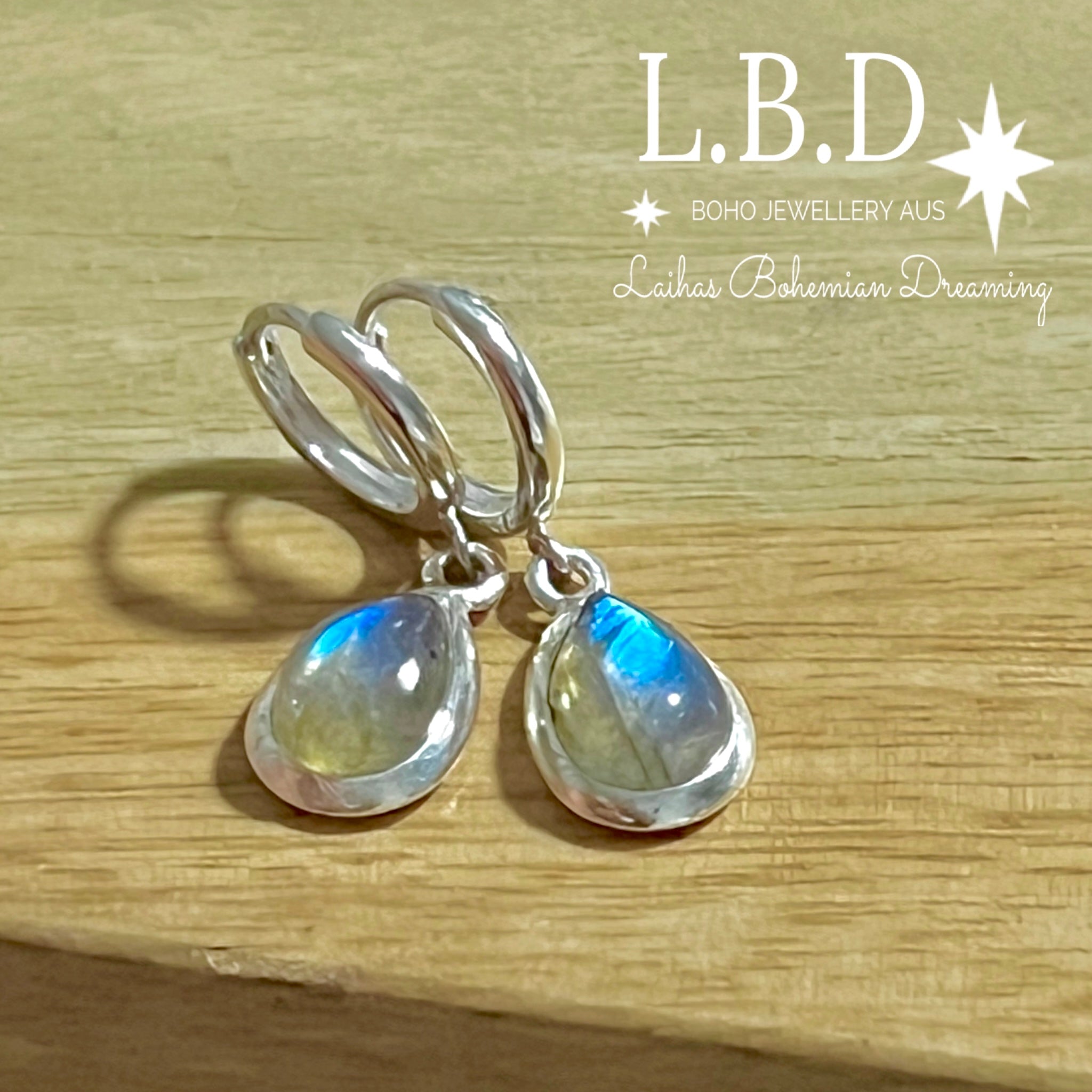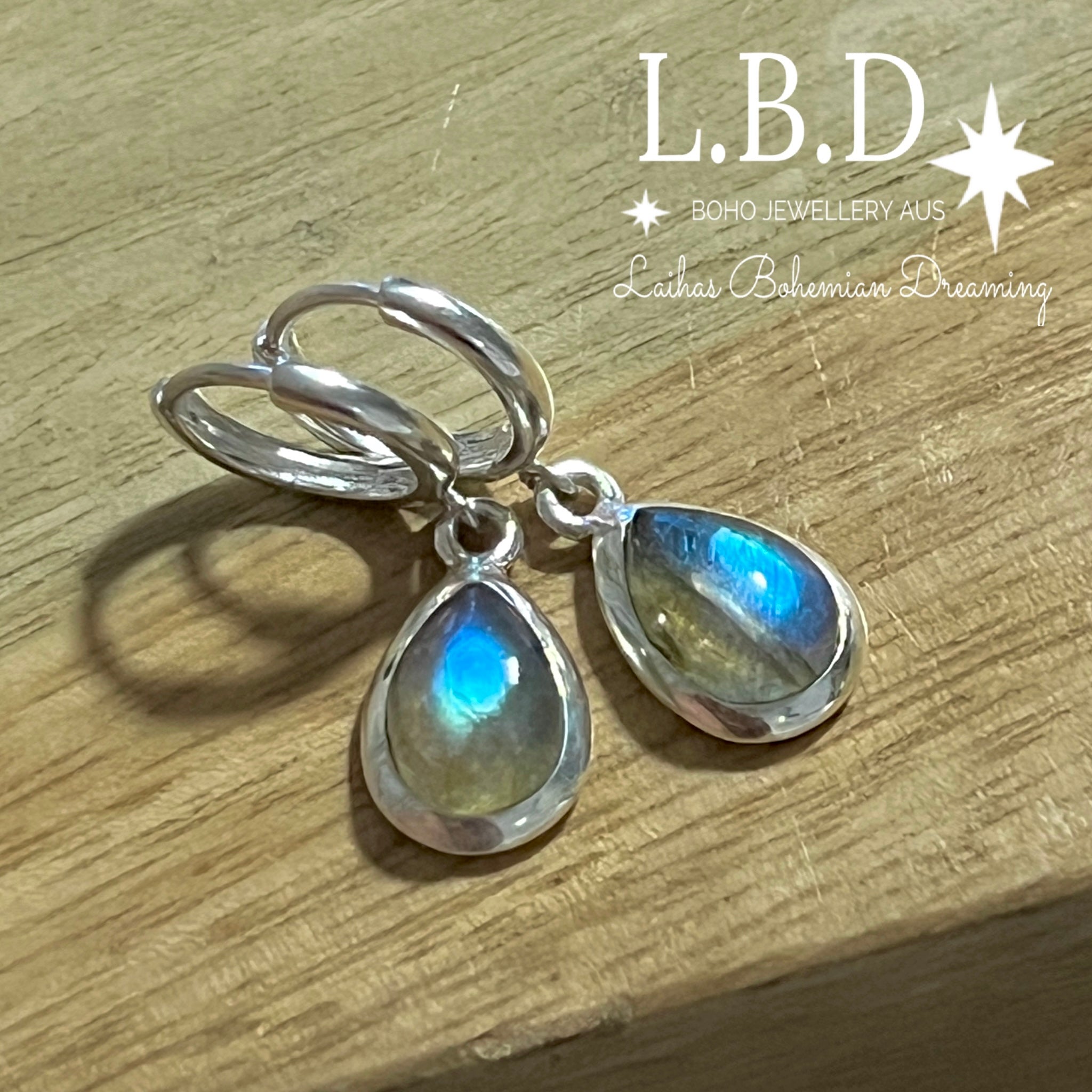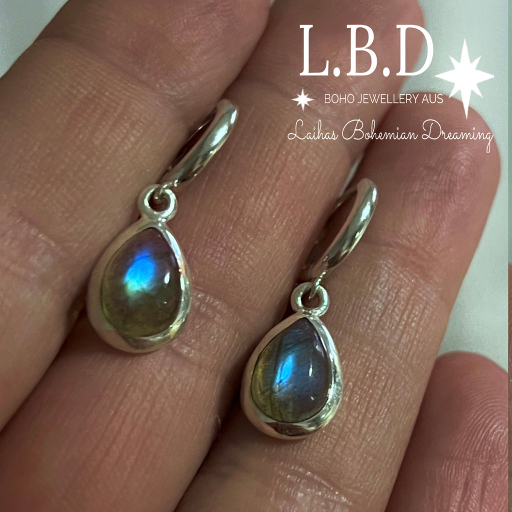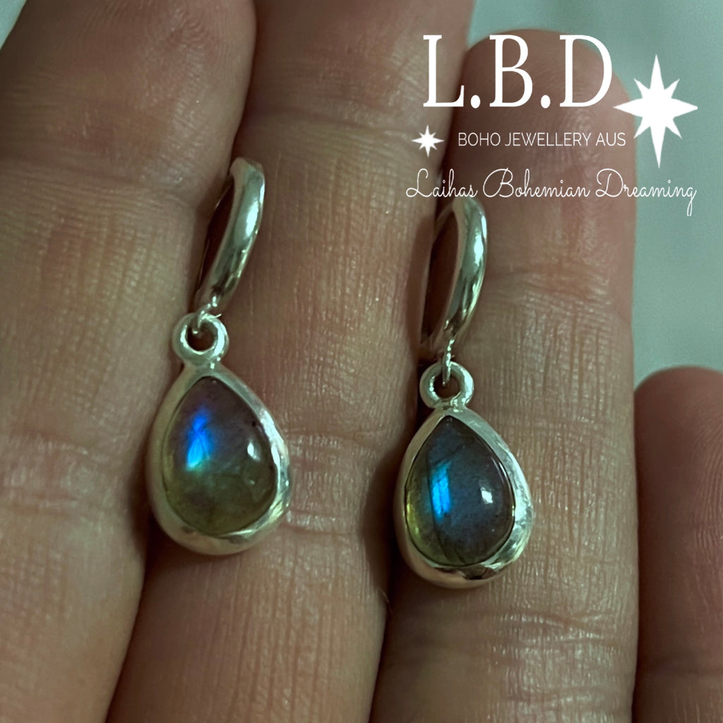 Laihas Mini Classic Chic Raindrop Labradorite Hoop Earrings
