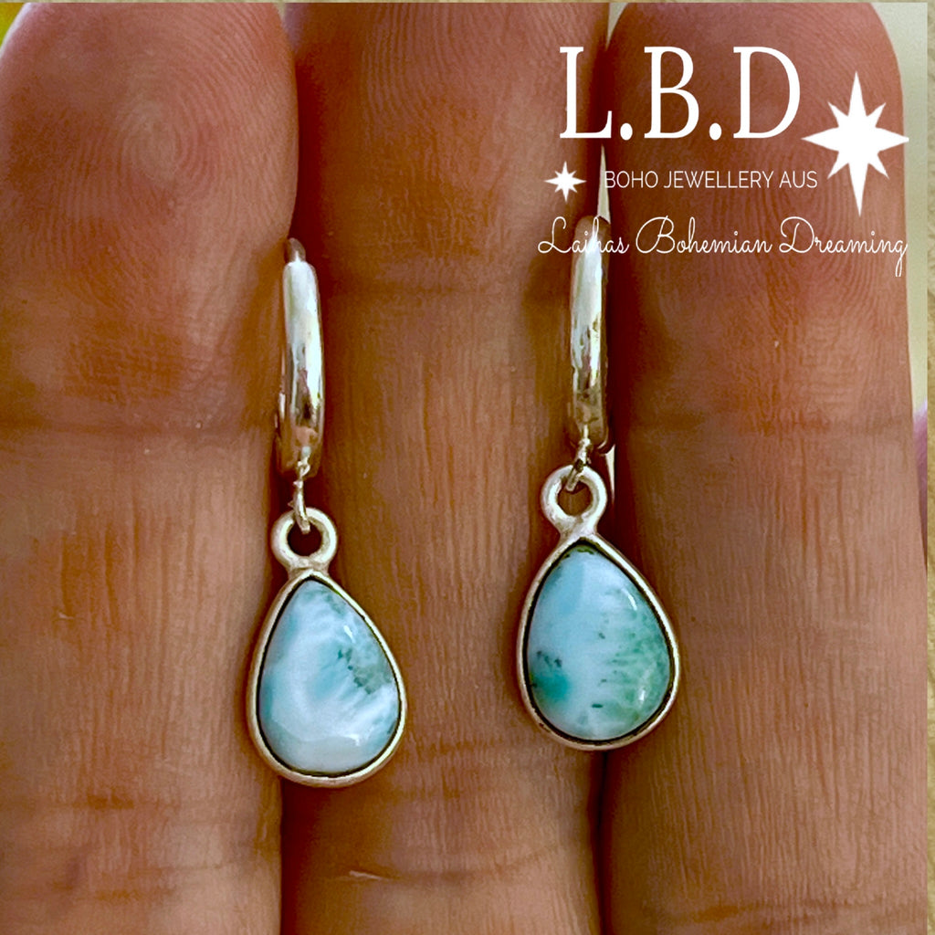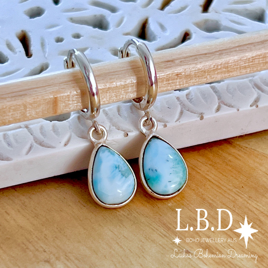 Classic Chic Mini Larimar Hoop Earrings made with Polished Solid Sterling Silver and Genuine Natural Larimar Stones