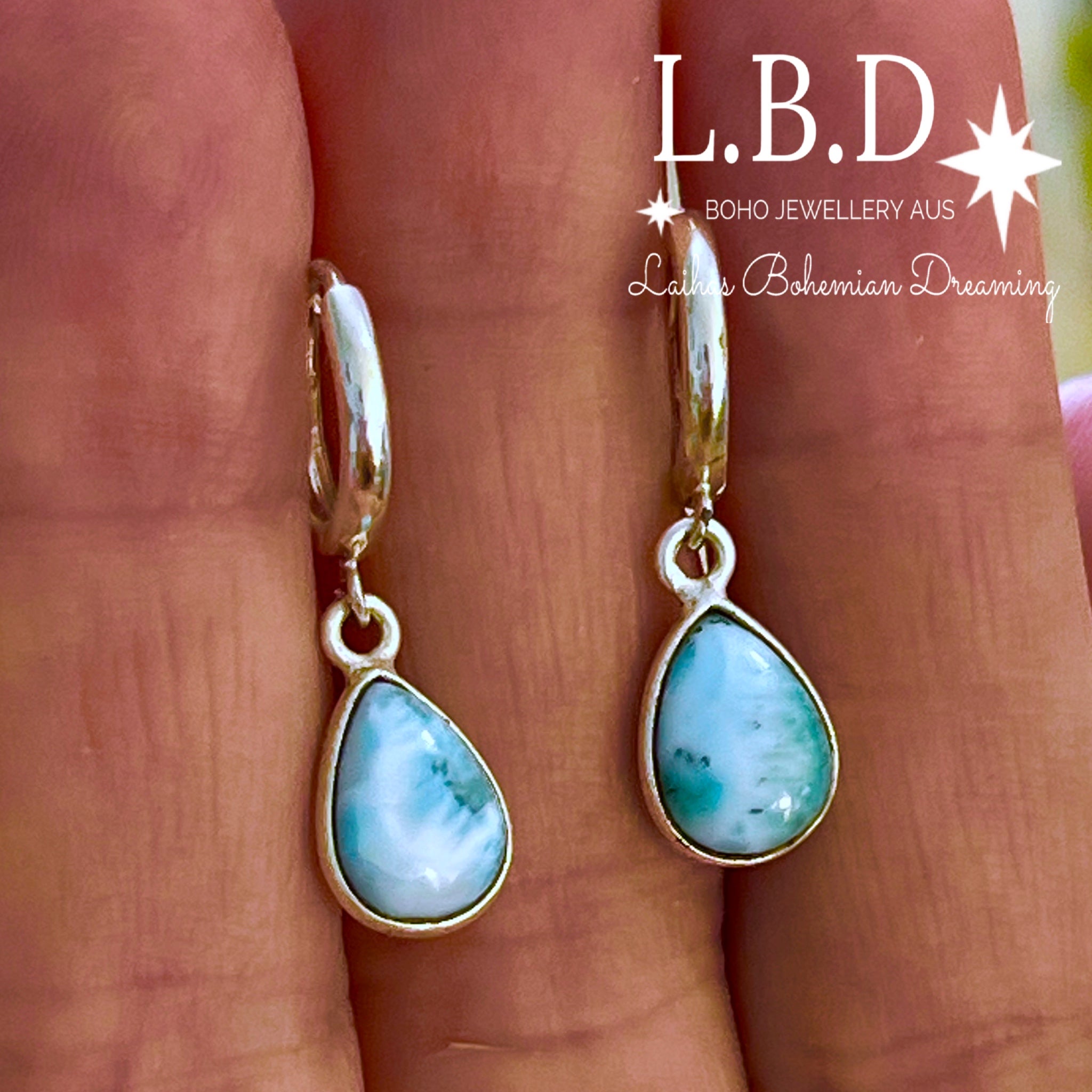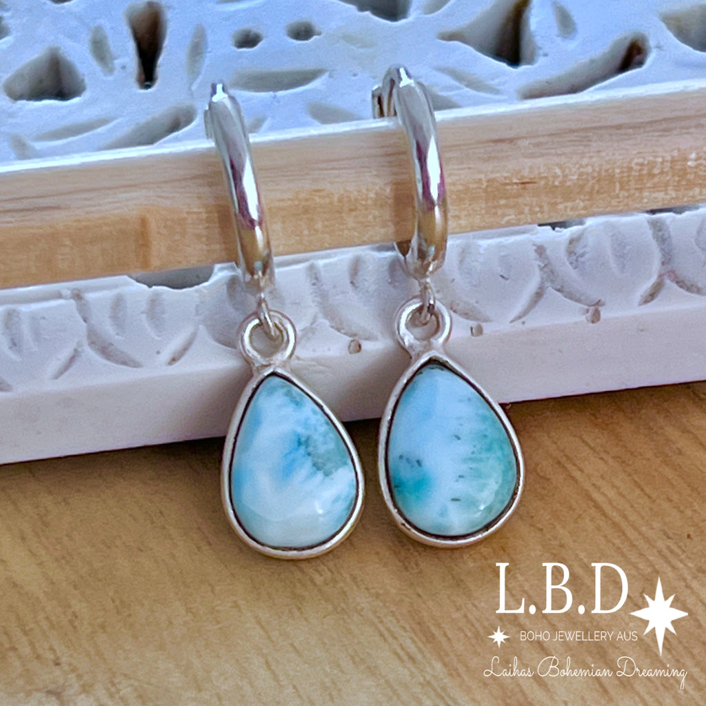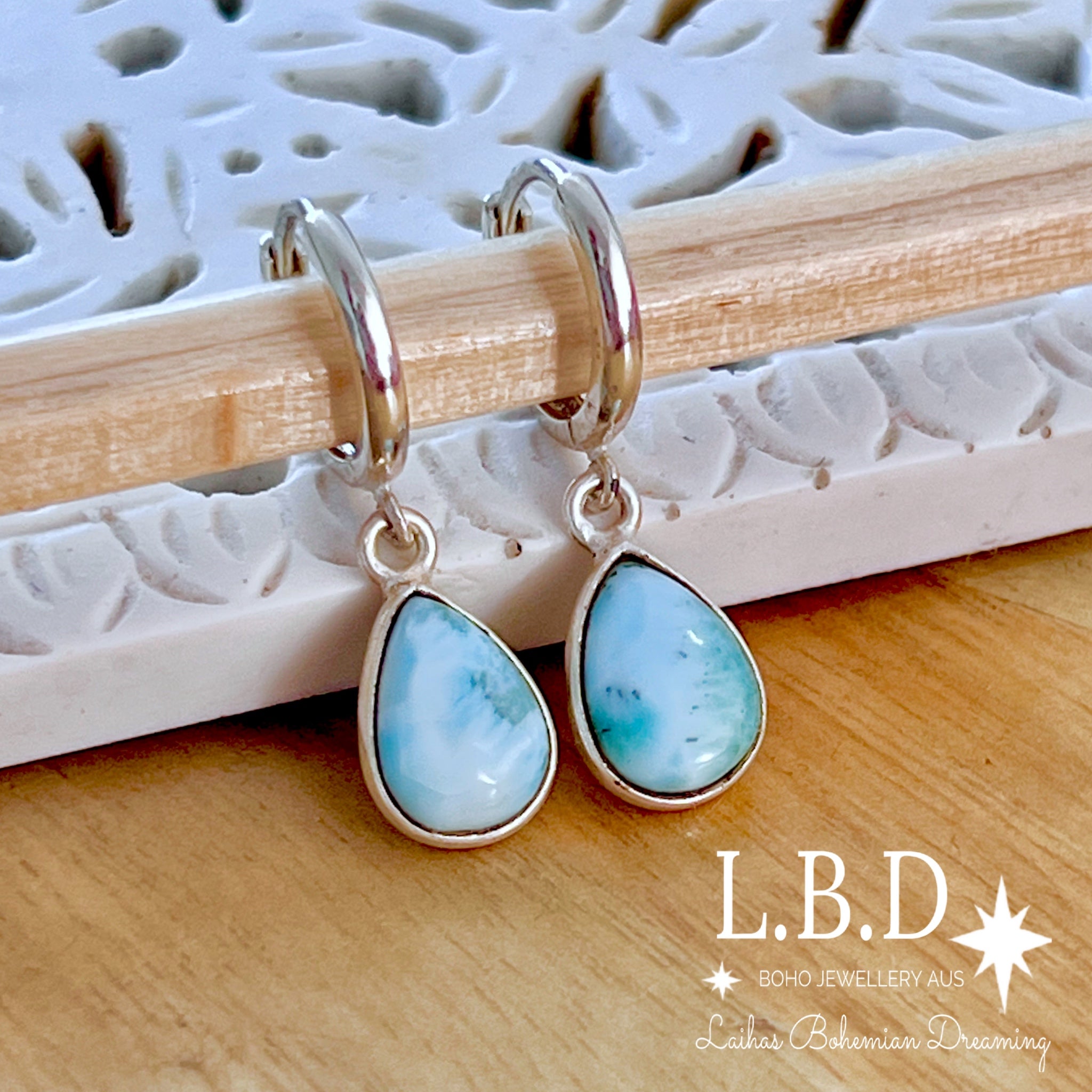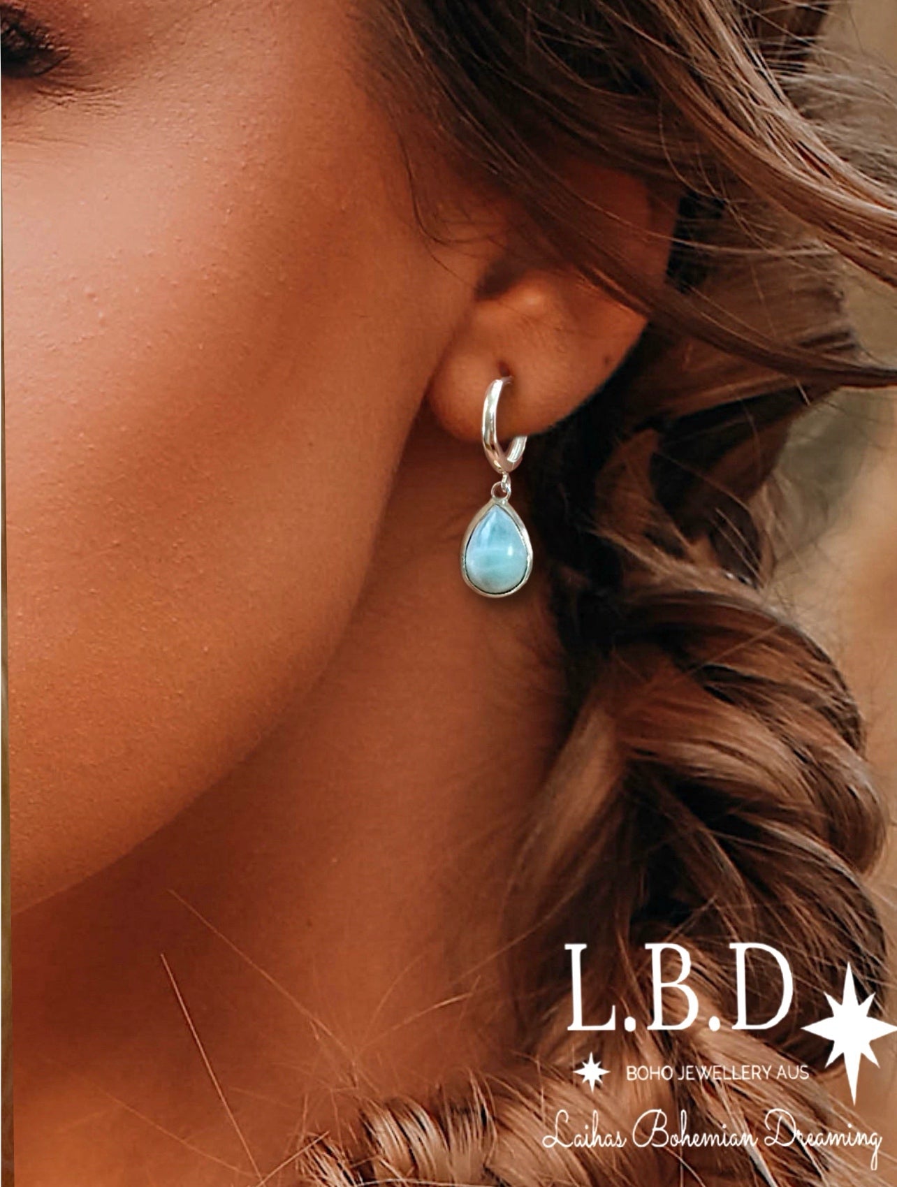 Laihas Mini Classic Chic Raindrop Larimar Hoop Earrings