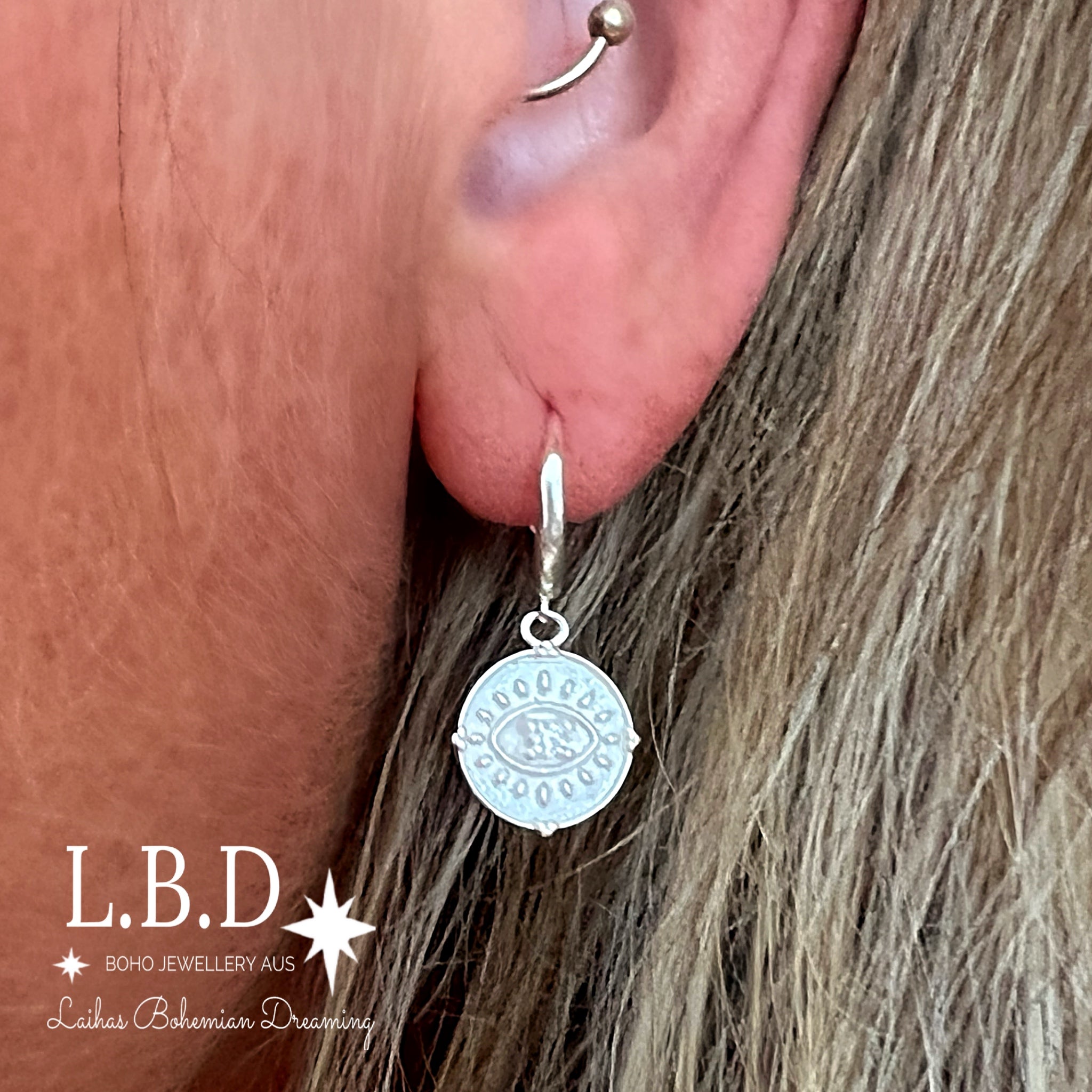 Laihas Spiritual Eye Sterling Silver Hoop Earrings